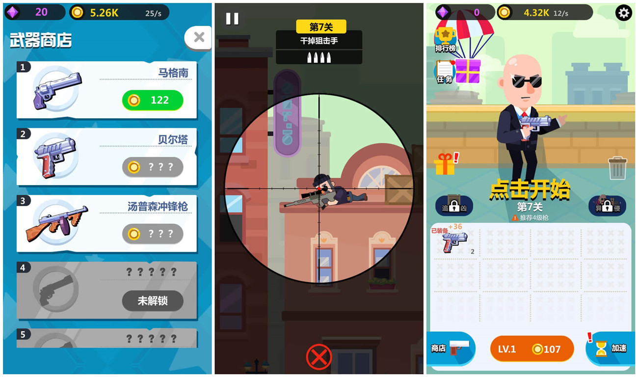 光头探长是一款合成射击手机游戏。合成枪械种类众多,玩法多样,在这个射击游戏中,辨别出敌人的衣着、行为特征,利用手中的枪,对付罪犯,解救人质。