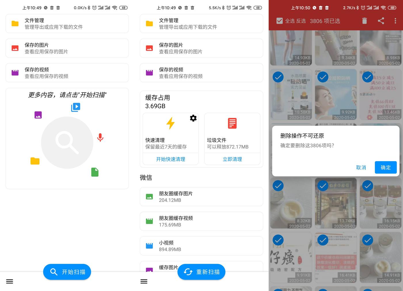 这是一款非常实用的微信缓存清理工具,在长时间使用微信聊天以后,您的微信会产生许多的聊天垃圾,占用您的手机内存空间,这样就会拖累您的手机运行速度,所以必须对微信进行清理,已精简去除无用布局!