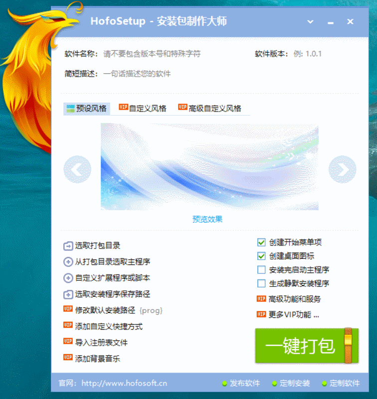 这是一款功能强大的安装程序制作工具,您只需要填写相关信息,它就可以将您的软件直接打包,然后生成一个精美的安装程序,非常的简单,而且打包后安装速度也非常的快,非常适合软件开发人员使用。