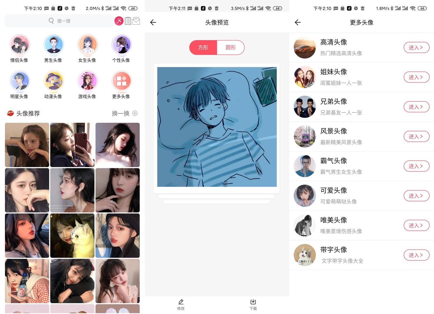 这是一款趣味头像APP!海量精选头像素材,换个头像,换个心情.超多时髦贴纸挂件以及滤镜功能,轻松美化你的头像.涵盖情侣头像、女生头像、男生头像、个性头像、动漫头像等等类型应有尽有,头像制作、设计功能,自由选择照片制作头像,让你个性十足。已去除广告!
