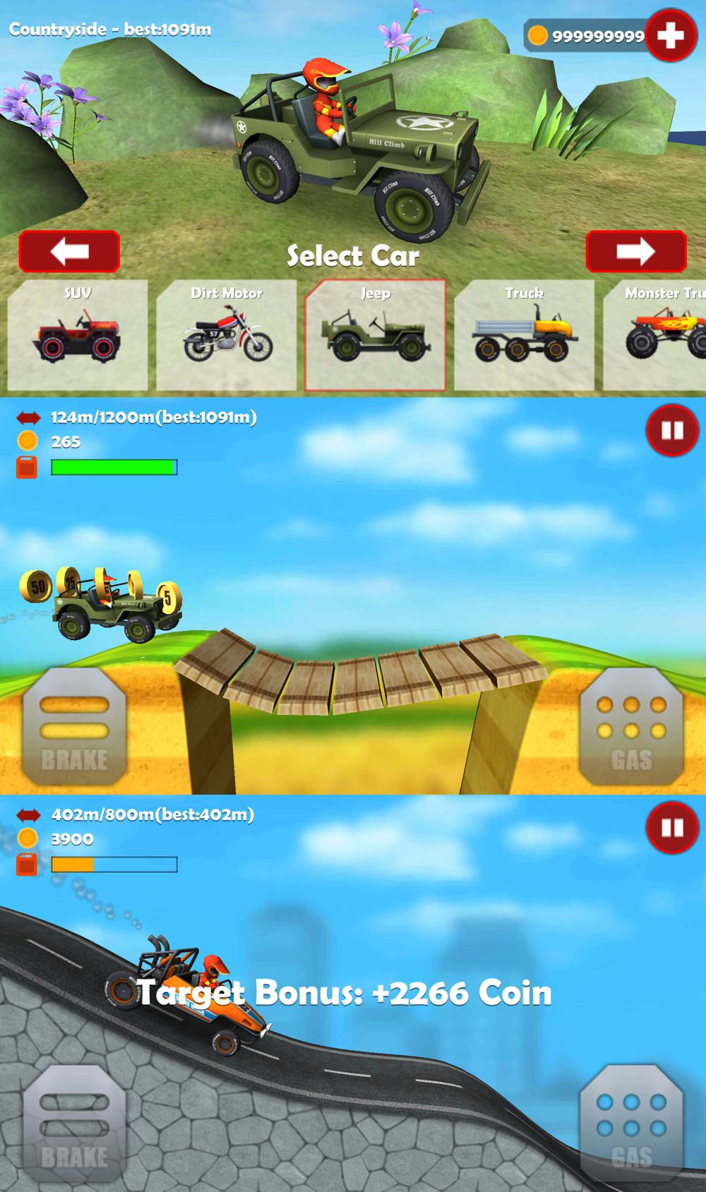 这是一款休闲娱乐越野赛车游戏!驾驶你的赛车在有限的时间内行驶最远的距离。各类车辆随意挑选,更有各种地图等你来刷新最远的记录。免费使用金币!