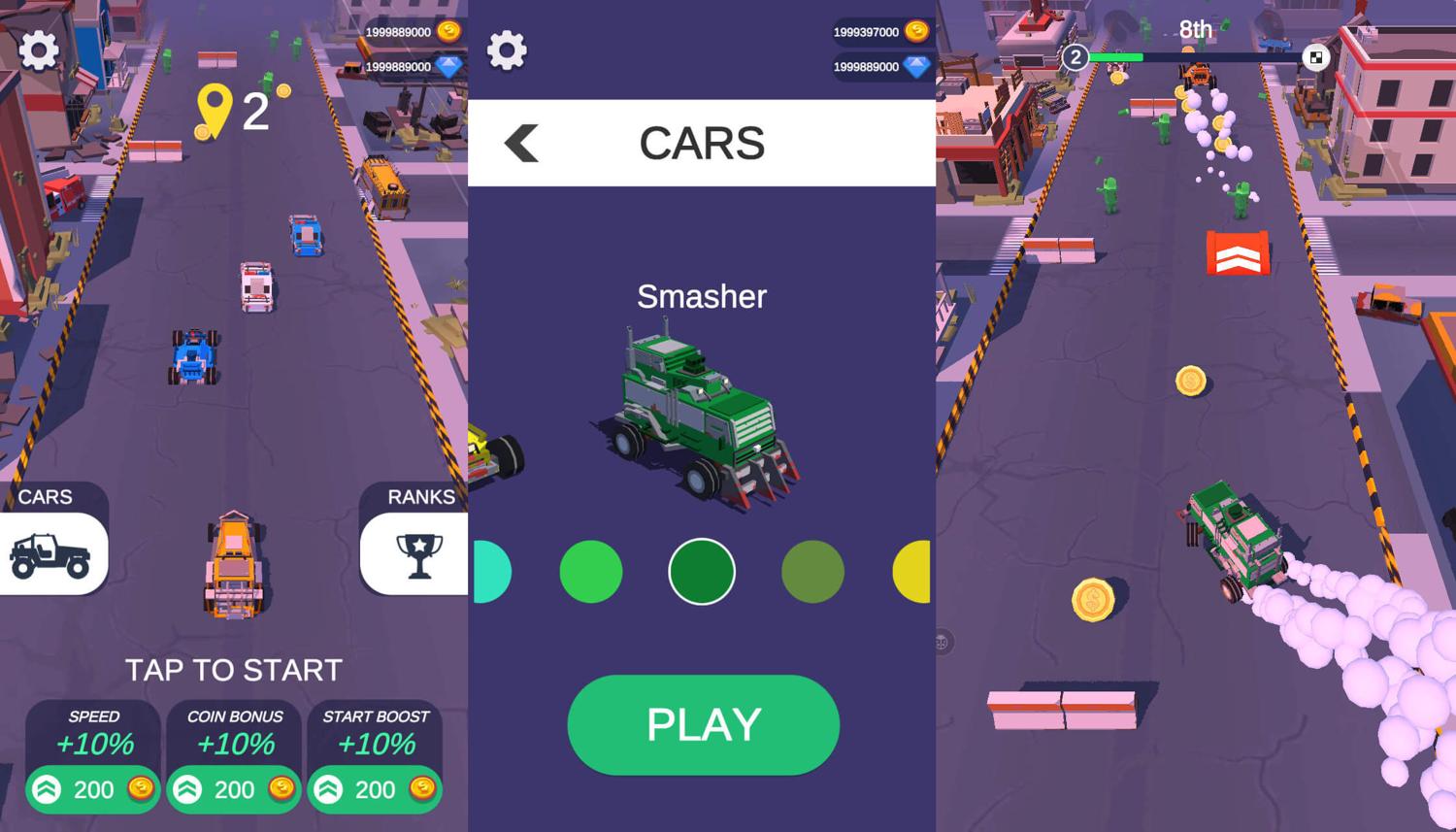 这是一款考验反应能力的娱乐竞速游戏。比赛中冲破障碍物,粉碎沿途僵尸,超多车型供你选择,大量金币助你一路畅通无阻。