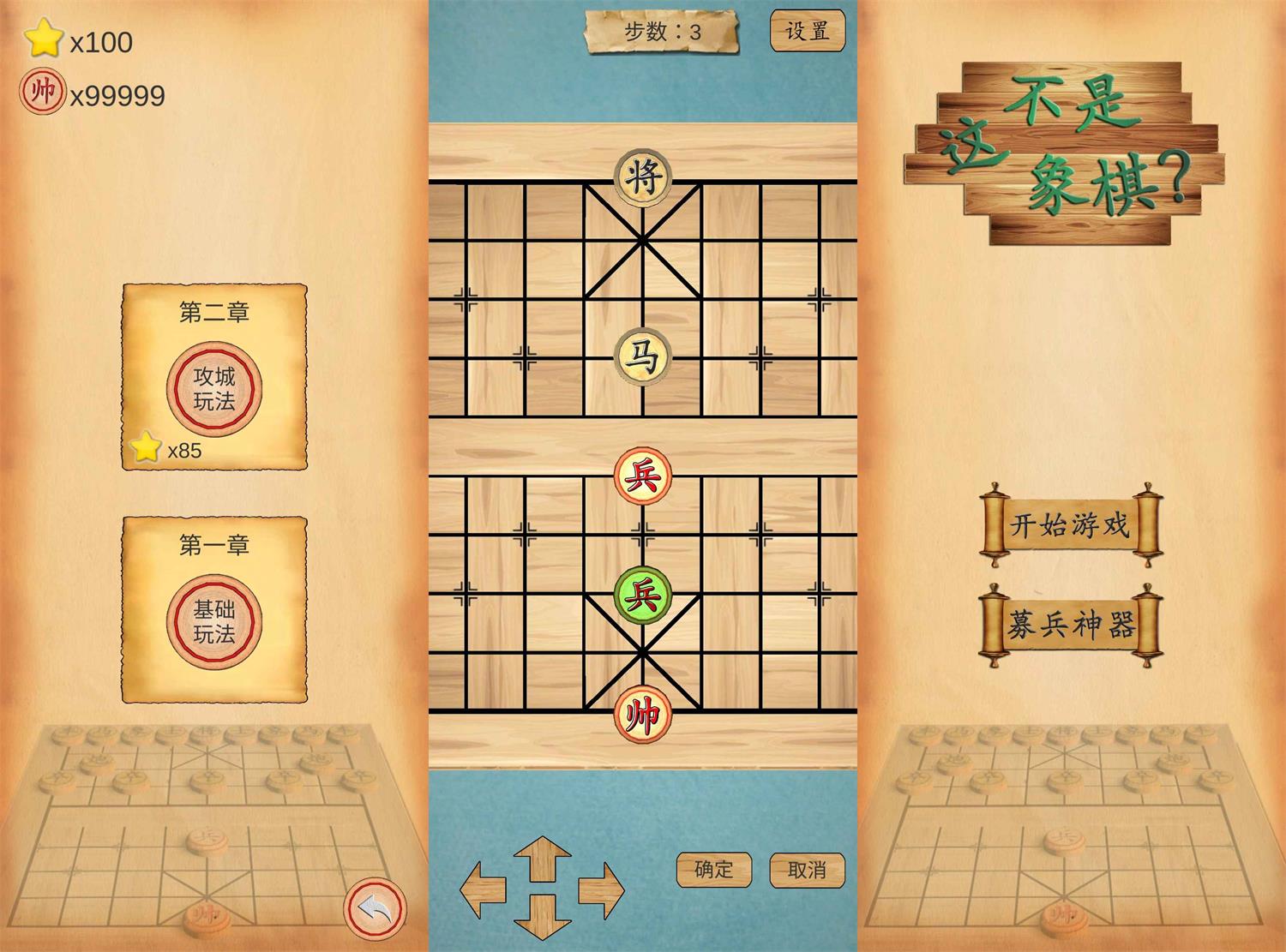 这不是象棋是一款无厘头的象棋闯关游戏。截然不同的操作模式,无厘头的行进规则,想尽一切办法用最少的步数吃掉对面的将,大量星星。