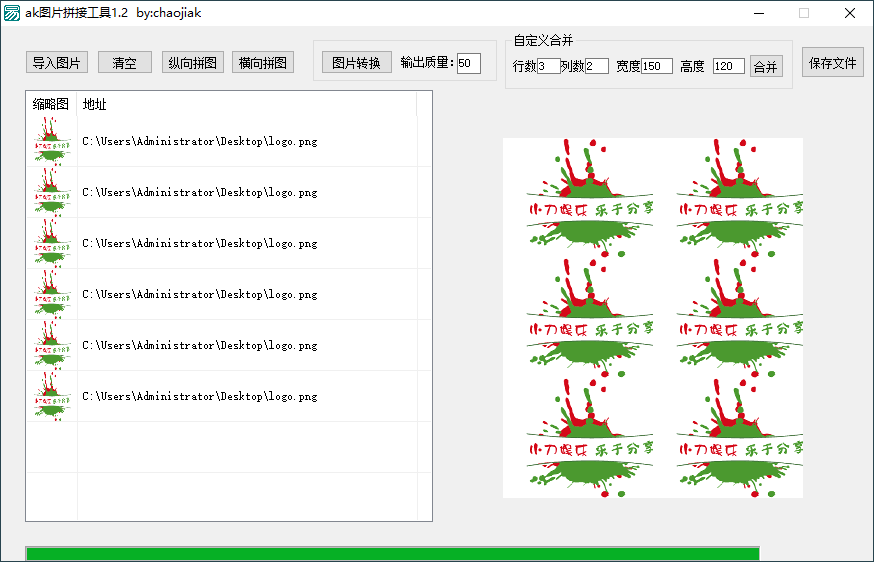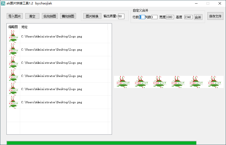 这是一款可以将图片、相片、截图等拼接起来,支持纵向拼图和横向拼图,支持自定义行列合并,只需手动填入图片宽度高度即可合并。