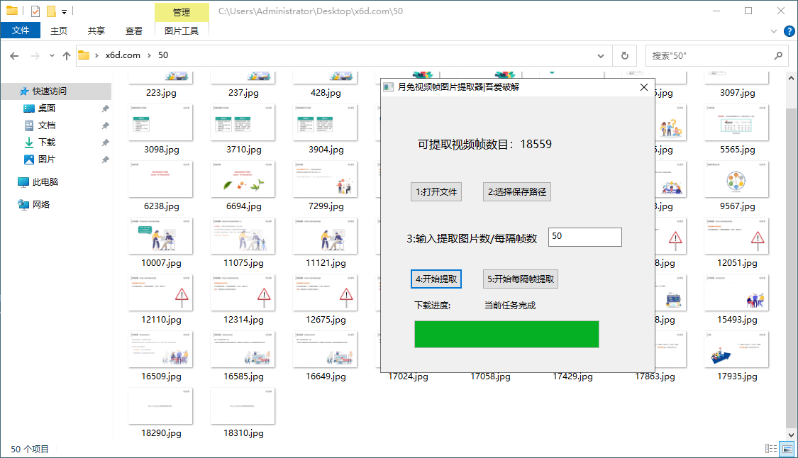 3、输入提取的图片数量或者每隔?帧数提取一张图片;