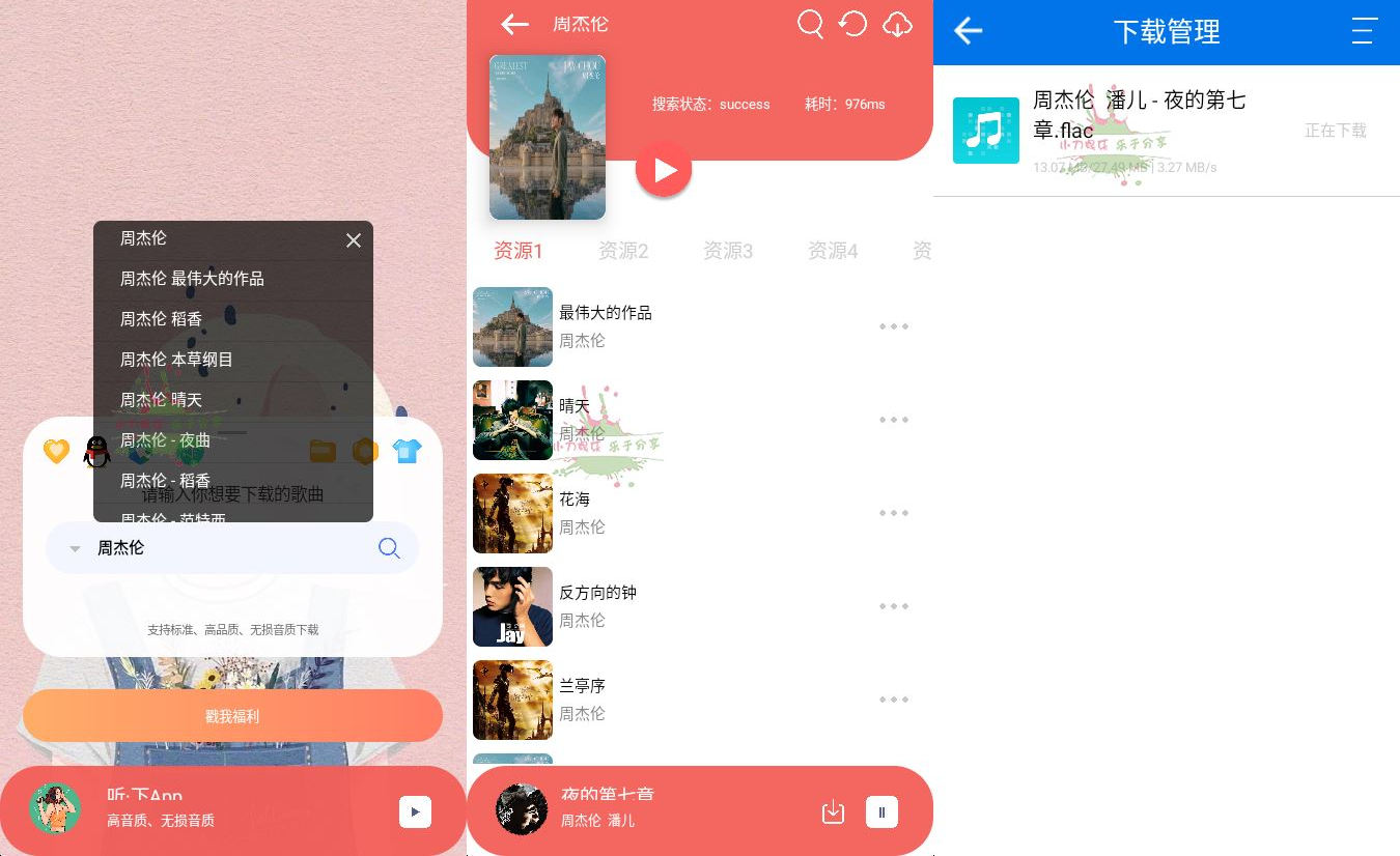 听下app是一款安卓音乐下载应用,聚合各大音乐平台网站搜索接口,免费在线试听及下载全网付费歌曲、版权音乐、无损音质歌曲。应用UI界面采用插画设计,简约清新,全网音乐免费下载320kps/无损FLAC音质。