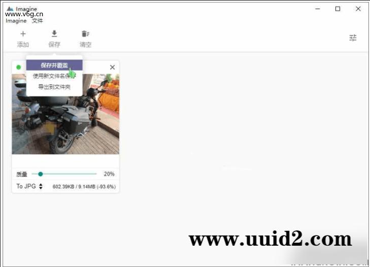 软件支持手动选择文件,以及拖移图片至软件。值得一提的是,不仅仅可以在设置同一修改图片压缩质量,也可以在主界面单独图片修改。可以单独图片导出,也可以选择保存而批量导出。毫无疑问,这是一款异常优秀的的图片压缩软件,具有简洁的UI和人性化的功能设计!