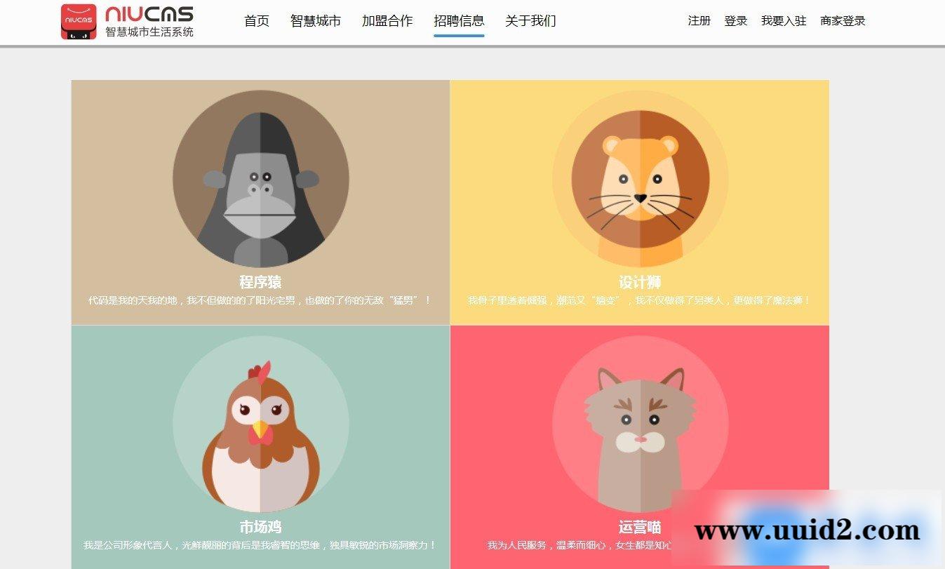最新Niucms3.45智慧城市/小区/乡村_农村电商_智慧城市生活服务平台 带配置教程+采集功能+niucms地域编码,商家入驻功能,新增多种功能。智慧城市系统好像取消了Apache环境的限制,本站iis环境测试通过,但必须要服务器支持伪静态,源码Apache伪静态规则.htaccess已提供,在根目录,不同主机伪静态规则请自己转换。